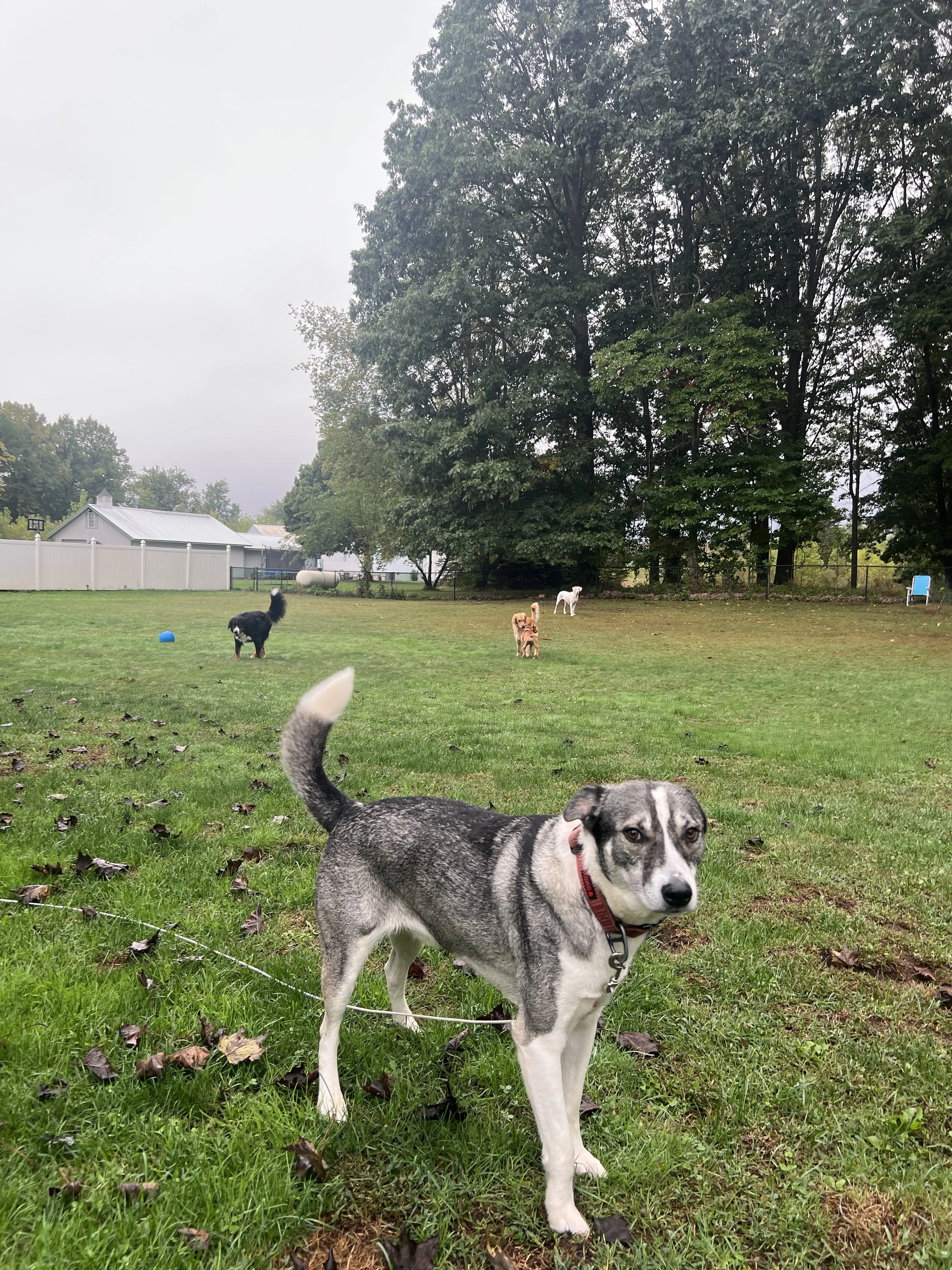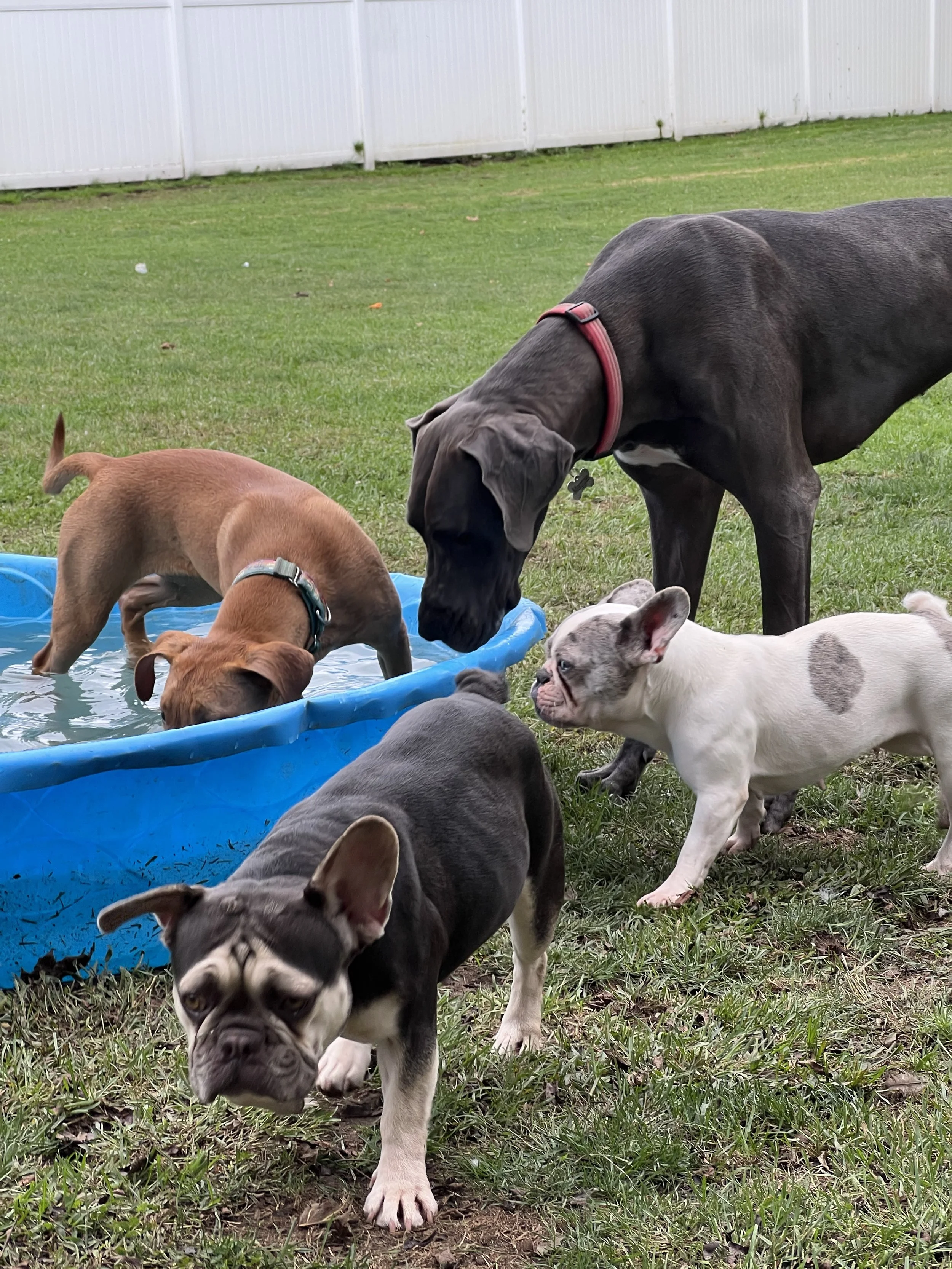 Home Plate is Bellatrix, our deaf-blind 2 year old Albino Great Dane. Bella is a puppy in her soul and in her body! She will run circles for days and make sure everyone wants to play too. We introduce her to younger dogs or working dog who could use getting their energy out!